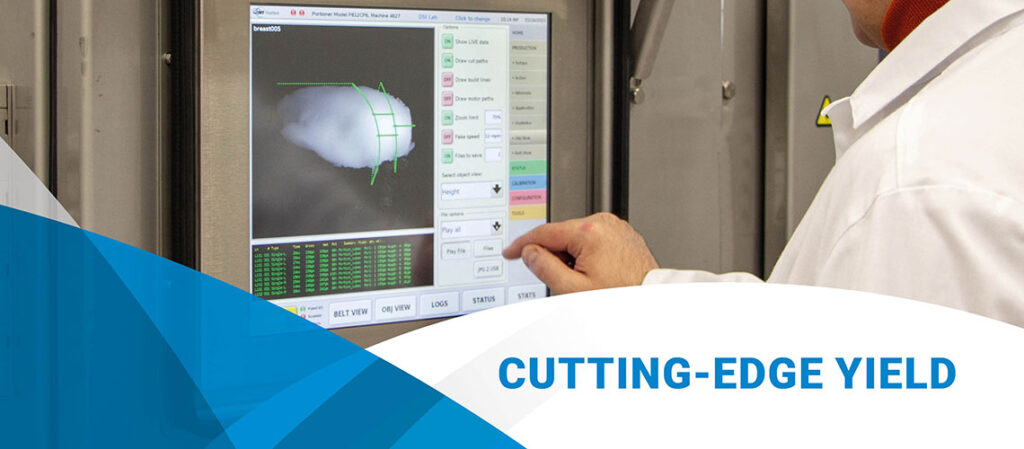 The DSI’s waterjet system is designed explicitly for portioning. As part of the installation package, JBT typically sends an application engineer and a service tech to provide training and help the customer set up the machine with all their required cut strategies.
