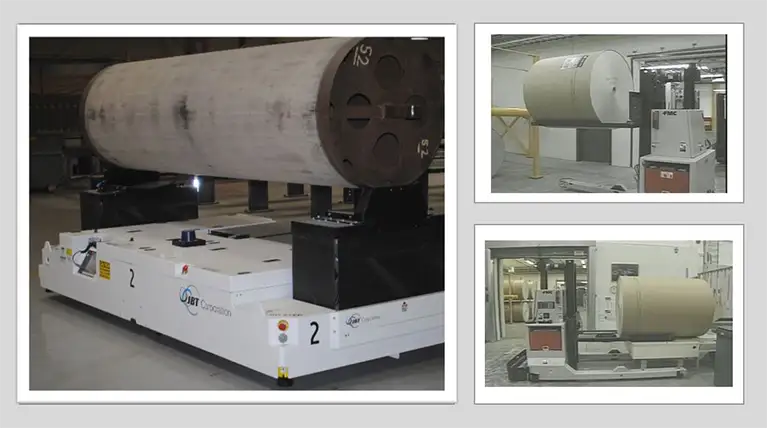 FMC delivers a wire guided AGV system supporting paper roll movement in the newspaper industry.