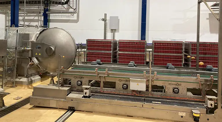 Der Dampf wird direkt in den Boden der Retorte eingespritzt, um ein schnelles und gleichmäßiges Aufsteigen zu ermöglichen. Wasserdüsen, die über die gesamte Mantellänge laufen, vermischen Dampf und Wasser intensiv und erzeugen eine homogene Temperaturverteilung, die zu einem gleichmäßigen Prozess in der gesamten Retorte führt. Die indirekte, sterile Kühlung über einen Plattenwärmetauscher spart Wasser und macht den Einsatz von Chemikalien zur Wasseraufbereitung überflüssig.