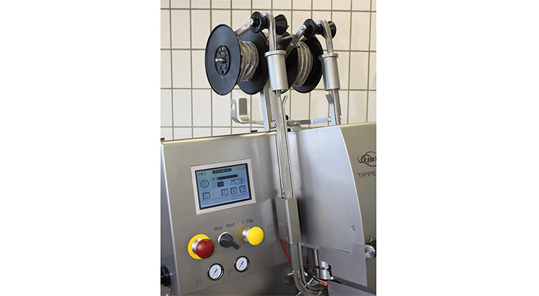 Como columna vertebral de la planta, Wenneman ha unido la 125H con una clipadora doble automatizada KDCMA400 de TIPPER TIE para mantener el rendimiento al máximo. La versátil KCDMA400 proporciona paquetes consistentes y de calidad para los gordos de carne picada de Wenneman, varios tipos de salchichas de verano, gordos de salchicha cocida, salami de ciervo y gordos de 5 libras de relleno para tacos. Cuando le preguntamos qué es lo que más le gusta de la KDCMA, Paul dijo: "El dinero que me hace ganar. Nos ahorra mucho trabajo. Compramos tripas de salchicha de verano de 2 x 18. Antes las deslizábamos en un cuerno, las embutíamos y cortábamos la salchicha a mano, de una en una. Cuando tienes que producir 200.000 libras de salchicha de ciervo en seis semanas y sólo puedes hacer unas 700 libras/hora, eso es mucho trabajo. Teníamos un gran equipo trabajando hasta las 11:00 todas las noches de la semana para conseguirlo. Ahora terminamos en las horas normales de trabajo, con 2.500 libras/hora. De media, la KDCMA produce al menos 8000 libras por semana durante todo el año. Durante la temporada de ciervos, puede hacer 100.000 libras por semana. La velocidad realmente me sorprendió. La KDCMA ha sido una de las mejores compras que hemos hecho. Ya la hemos recomendado a varios de nuestros compañeros, varios de los cuales han venido a verla funcionar".