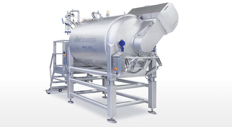 La première catégorie d'unités de massage pour les grandes capacités - très productives, puissantes et fiables, elles peuvent traiter des quantités allant jusqu'à 3000 kg ou 6000 kg.conçues selon le principe de la ligne : Les lignes de production équipées de plusieurs unités permettent un flux de produits idéal sans risque de croisement de chemins ou de contamination croisée.Une large gamme d'options permet l'incorporation dans tout processus de fabrication industrielle. De l'alimentation automatique par chargement sous vide à la vidange intelligente de la bande FLOWMAX commandée par programme, Schröder .