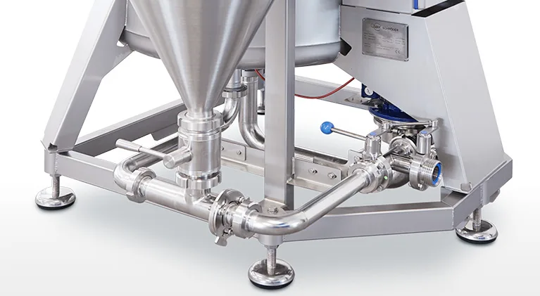 A centrifugal pump with impeller technology mixes water and additives very effectively, ensuring fast and uniform mixing of solid and liquid brine components. The optionally available hopper facilitates the addition of the components and the integrated Venturi system enables lump-free addition of the dry substances.