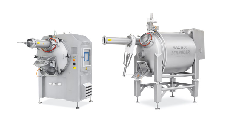 The main area of use of the HAMAX 800 whole muscle stuffer is automatic filling of fresh (for example, as restructured meat) or cured meat parts/pieces of meat (for example, as raw and cooked cured meat) in artificial casings. The fundamental principle of the machine is based on a hydraulically driven piston that presses the meat into the casings. The HAMAX 800 whole muscle stuffer forms the technical requirement for increasing the efficiency in the production of sliced goods which are calibrated in length and thickness. In combination with an automated double clipping-machine, swift and efficient processing can be reached, which was previously very time-consuming for these products. The combination of the whole muscle stuffer and the integrated cutting system is the innovative factor. This affects the exact portioning of pork loins with tendon.