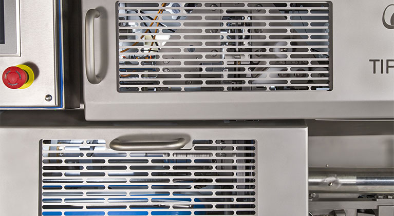 - The SVU6800 is designed with hygienic efficiency and ease of maintenance in mind. The direct drive motor eliminates all belts and chains to minimize potential failure points and avoids the hygienic headache of a belt /chain near the product area. Centralized grease points make the SVU6800 very easy to care for, ensuring durable and worry-free operation. There is no closed tubing or framing. All exterior surfaces are smooth, easy to clean, and angled to prevent water pooling. Easy access guards at the front and the back make troubleshooting and rebuilds mechanic friendly.