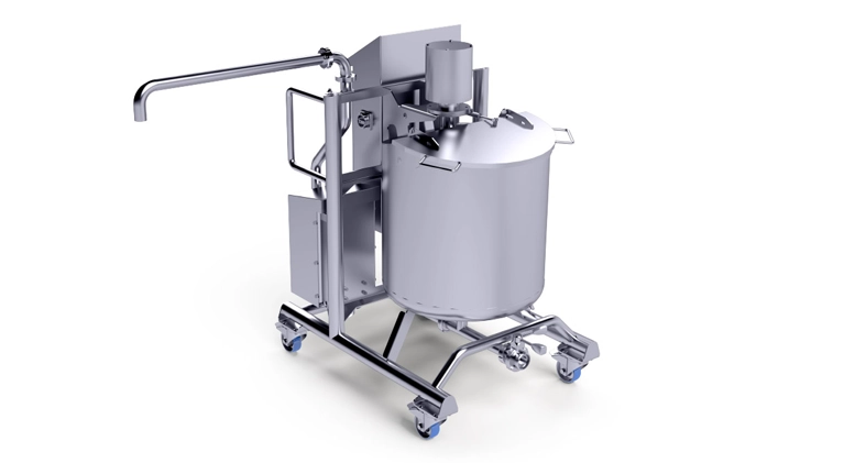 • An optional cooling jacket makes it possible to cool the coating material by injecting a coolant into the double-jacket container