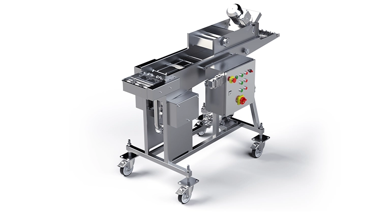 Do you eat your schnitzel plain or prefer it breaded? With our battering machine, you’ll apply different liquid coating materials to the food to be processed and get, for example, crispy schnitzel and succulent mozzarella sticks that way.