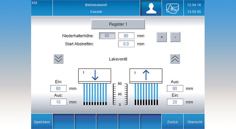 - The large number of needles also makes it possible to adjust the product feed, in addition to 50 mm and 100 mm, up to 200 mm. This ensures a high level of output even for very small and light products.