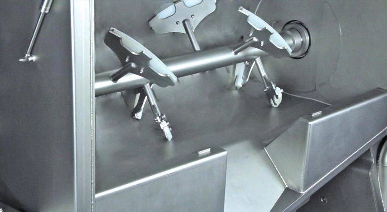 - Distribuição homogênea da temperatura e características ideais de mistura, mesmo em grandes lotes, graças à camisa dupla aquecida e aos dois eixos da pá misturadora